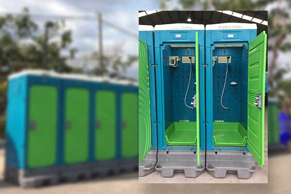 ตัวห้องอาบน้ำเคลื่อนที่มาตรฐานสูงจากประเทศญี่ปุ่น ลักษณะตู้เดี่ยว ขนาด 90x150x250 ซม. ทำด้วยวัสดุ PE มีความแข็งแรงทนทาน ป้องกันความร้อนได้ดียิ่งขึ้นด้วยพลาสติก 2 ชั้น สีโทนเขียว-ฟ้า สวยงาม บำรุงรักษาง่าย สามารถติดตั้งได้ทุกสถานที่ มีถังสิ่งปฏิกูลขนาด 400 ลิตรอยู่ภายล่างของตัวห้องน้ำมีฝักบัว พร้อมที่วางสบู่และชั้นวางของเพื่อความสะดวกสบาย ภายในตู้มีถาดรองน้ำเพื่อป้อวกันการไหลซึมของน้ำ