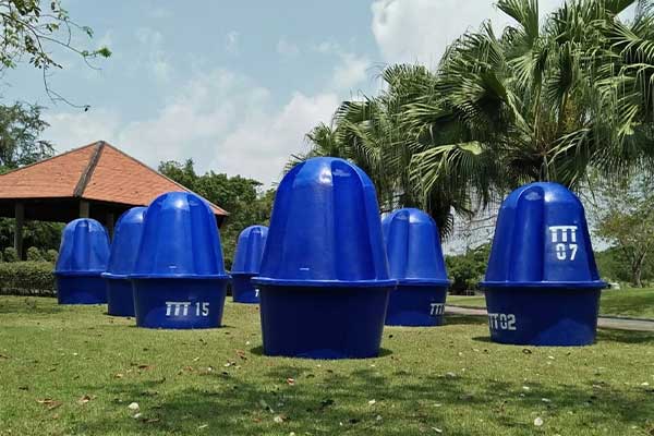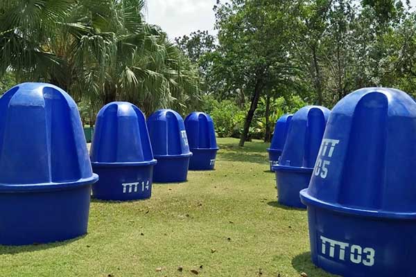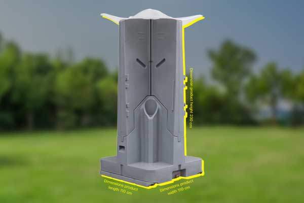โถปัสสาวะรุ่นใหม่ ขนาด 110 x 110 x 230 ซม. มีถังกักเก็บสิ่งปฏิกูลขนาด 480 ลิตร ตัวโถปัสสาวะ มีความแข็งแรง มีหลังคากันความร้อน พร้อมฉากกั้นเพื่อความเป็นส่วนตัว สามารถใช้งานพร้อมกันได้ ถึง 4 คน